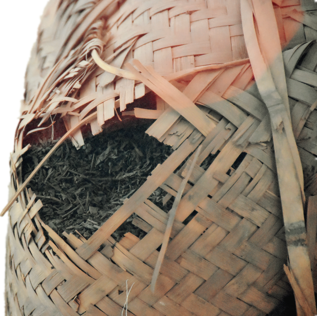 传统天尖茶是以谷雨后采摘的一级鲜叶,按照杀青、揉捻、渥堆、七星灶烘焙、静置醇化、汽蒸篓装等工序制作而成的轻压安化黑茶。