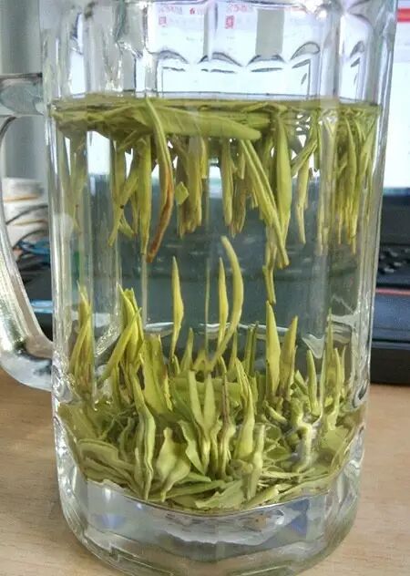据业内人士分析,这款茶从外形看不太可能是正宗的黄山毛峰,因为黄山毛峰,尤其是明前茶,芽头比较粗壮,色微黄。而茶友“梨花带雨-青衫湿”这款茶,干茶翠绿或墨绿,芽头细长。