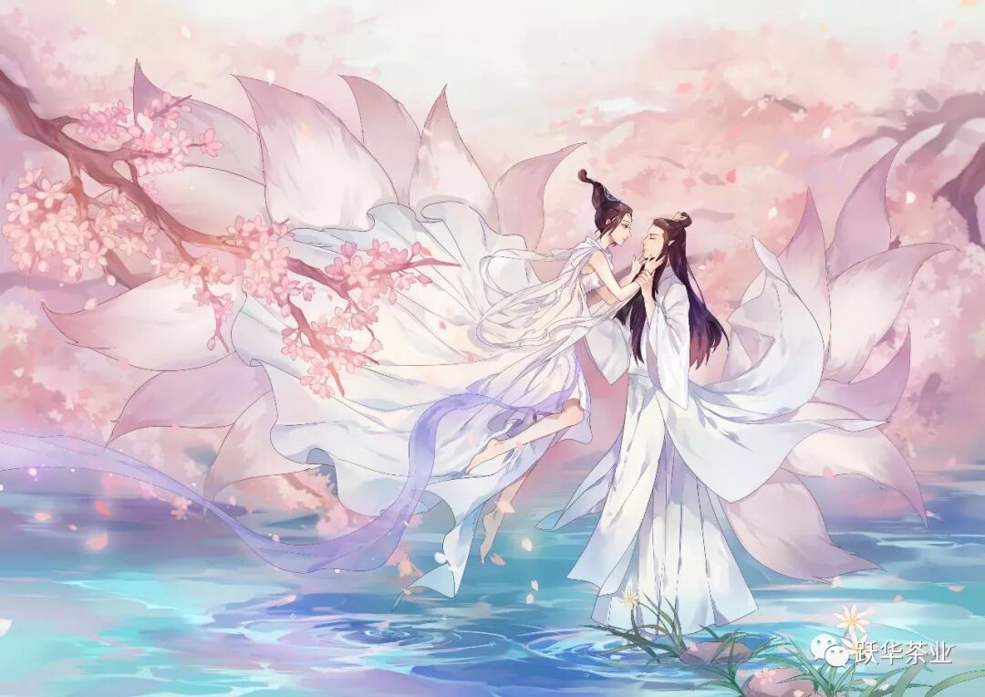 第二年春天,茶籽发芽了,鱼仙出现了,两人成亲之后,相亲相爱,共同劳作,培育茶苗。