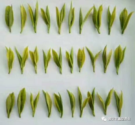 茶汤似甘露,碧清微黄,滋味鲜爽,内质香高而爽,味醇而甘;叶底匀整,嫩绿色润,嫩绿鲜亮。