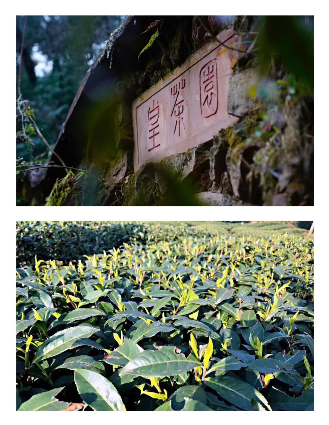 宋考宗淳熙十三年,蒙顶茶山正式被命名为“皇茶园”。茶园以石栏围绕,里面的茶树,就是吴理真种植的七株“灵茗之种”。茶园正面,有双扇石门,两侧有著名的两句石刻楹联:“扬子江心水、蒙山顶上茶”,横额书写“皇茶园”。遗址至今还在。