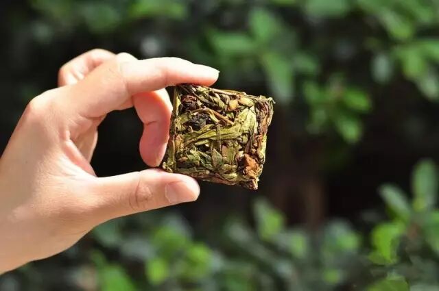 打开包装,之间方方正正的一块茶饼,看上去枯黄的叶子中泛着丝丝绿意,闻一闻,茶叶所共有的香味中夹杂着烟熏火燎的气息,一缕若有若无的香气从那经过千锤百炼的叶子中飘到我的鼻孔中,一时间,脑洞大开,无比的清醒!