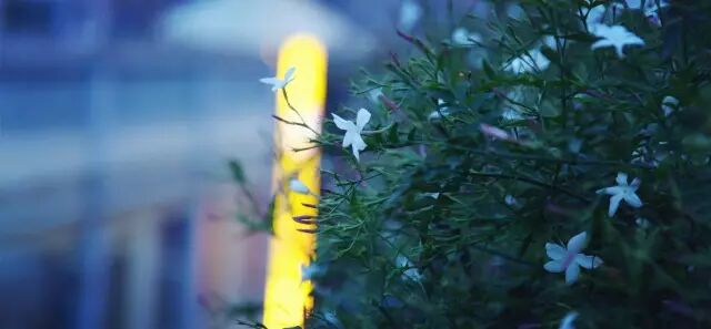 茉莉花本身是比较平凡的花,花开并不惊艳,洁白的小花朵雨后很容易就缀满了翠绿的枝头,而每当一阵微风拂过,你就可以看见她们在盈盈地摇曳,伴着似有还无的暗香浮动。