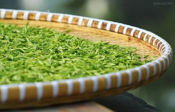唐朝时就被列为贡品,古人们又称碧螺春为“功夫茶”、“新血茶”。高级的碧螺春,茶芽之细嫩0.5公斤干茶需要茶芽6-7万个。炒成后的干茶条索紧结,白毫显露,色泽银绿,翠碧诱人,卷曲成螺,产于春季,故名“碧螺春”。此茶冲泡后杯中白云翻滚,清香袭入,是中国的名茶。主要工序为杀青、揉捻、搓团显毫、烘干。