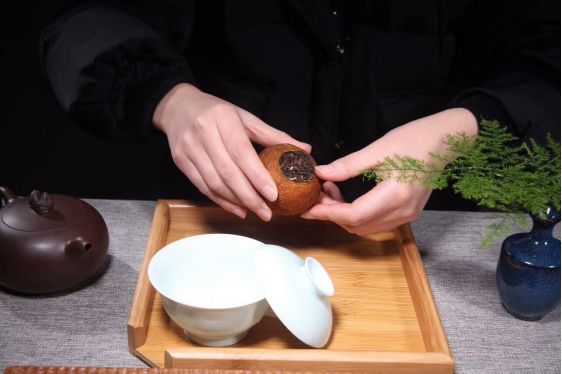 而桔普茶的原料是以阳山桔以及其他的桔子果皮为原料,然后与云南普洱熟茶相结合制成的茶品。