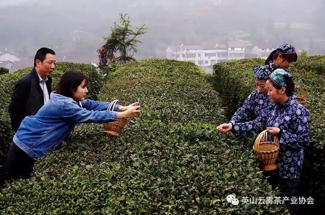 湖北绿羽茶道院院长刘元魁对英山云雾茶采摘、制作及茶艺表演等主要环节进行技术点评与解说。英山县委宣传部常务副部长冯廷权、外宣部主任万隆、英山茶叶产业化办公室主任何青松、英山云雾茶产业协会办公室主任彭鹏及相关工作人员陪同。