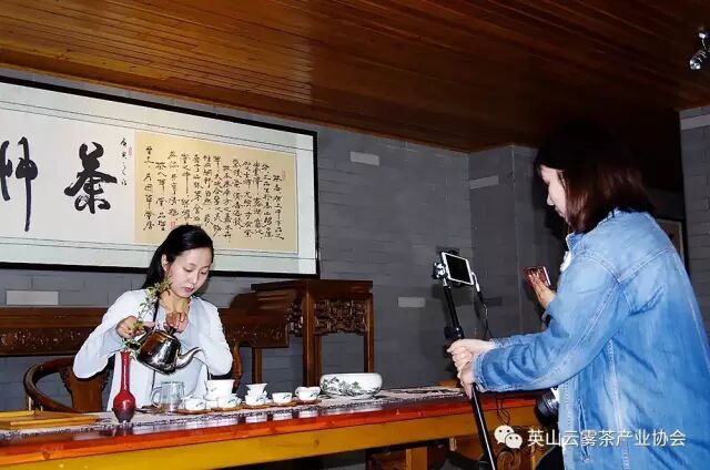 第二站,直播团队来到了英山茶草堂产业科技有限公司下属的茶草堂茶楼,由茶草堂公司茶艺师对英山云雾茶茶艺表演的每一个动作进行分解演示,直播团队进行在线直播。同时,茶草堂公司总经理姜保益向直播团队详细介绍了英山云雾茶的品质优势。