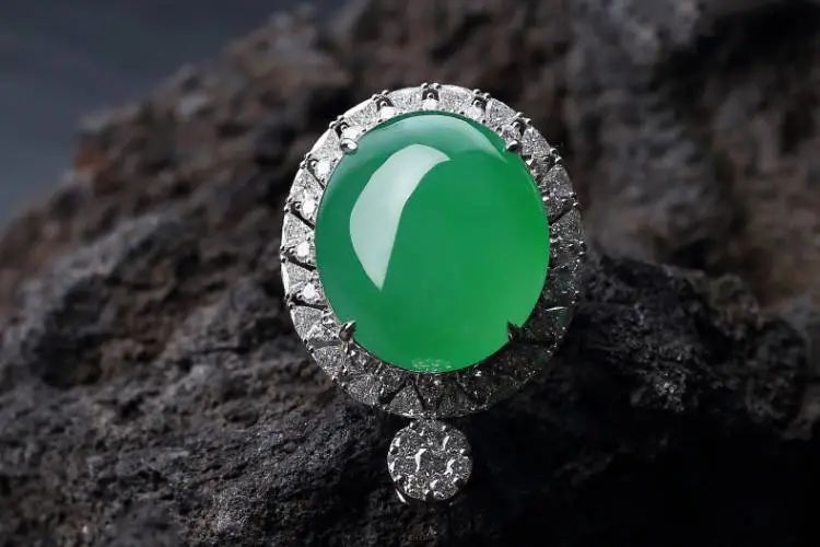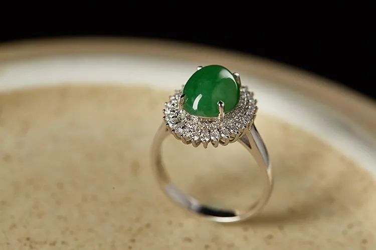 镶嵌类型的戒指还有蛋面类型,椭圆的蛋面翡翠圆润不失大气。