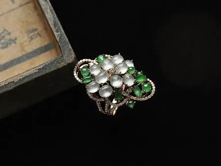 翡翠花戒精致小巧,设计新颖独特,别具美感。也因为翡翠只作为点缀,戒面小,价格相对其他翡翠戒指便宜。