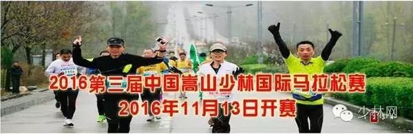 2016中国嵩山少林国际马拉松赛将于11月13日8:00在河南省登封市嵩山鸣枪开赛。赛事项目设马拉松/半程马拉松/迷你马拉松,赛事规模15000人。在天地之中欣赏嵩山美景、观看少林武术表演、畅跑马拉松、领略儒释道三教荟萃的千年文化积淀。