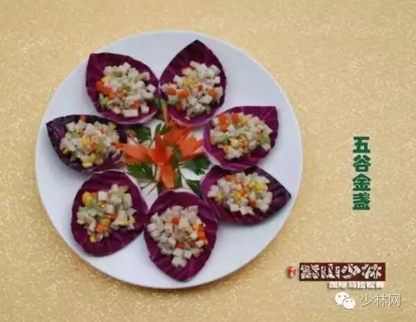 用灵芝、猴头、银耳、白果、木耳、嵩菇、香菇、茯苓制成的香酥食品,有食疗效果,能强筋、活络、提神、健身。是少林僧人的传统食品,已有千余年制作历史。