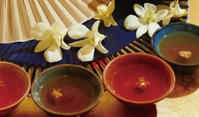 冲泡花茶时水温80-90摄氏度为宜,通常茶水的比例为1:50,每泡冲泡时间为3-5分钟。