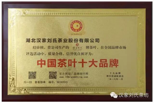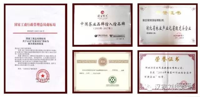 “汉家刘氏”已是湖北首批省级农民林业专业示范社,是“国家农民合作社示范社”、被中国茶业博物馆收入“中国茶业品牌馆”。“汉家刘氏”是中国驰名商标、品牌价值6.45亿元,居2015年中国茶叶品牌价值榜第6位