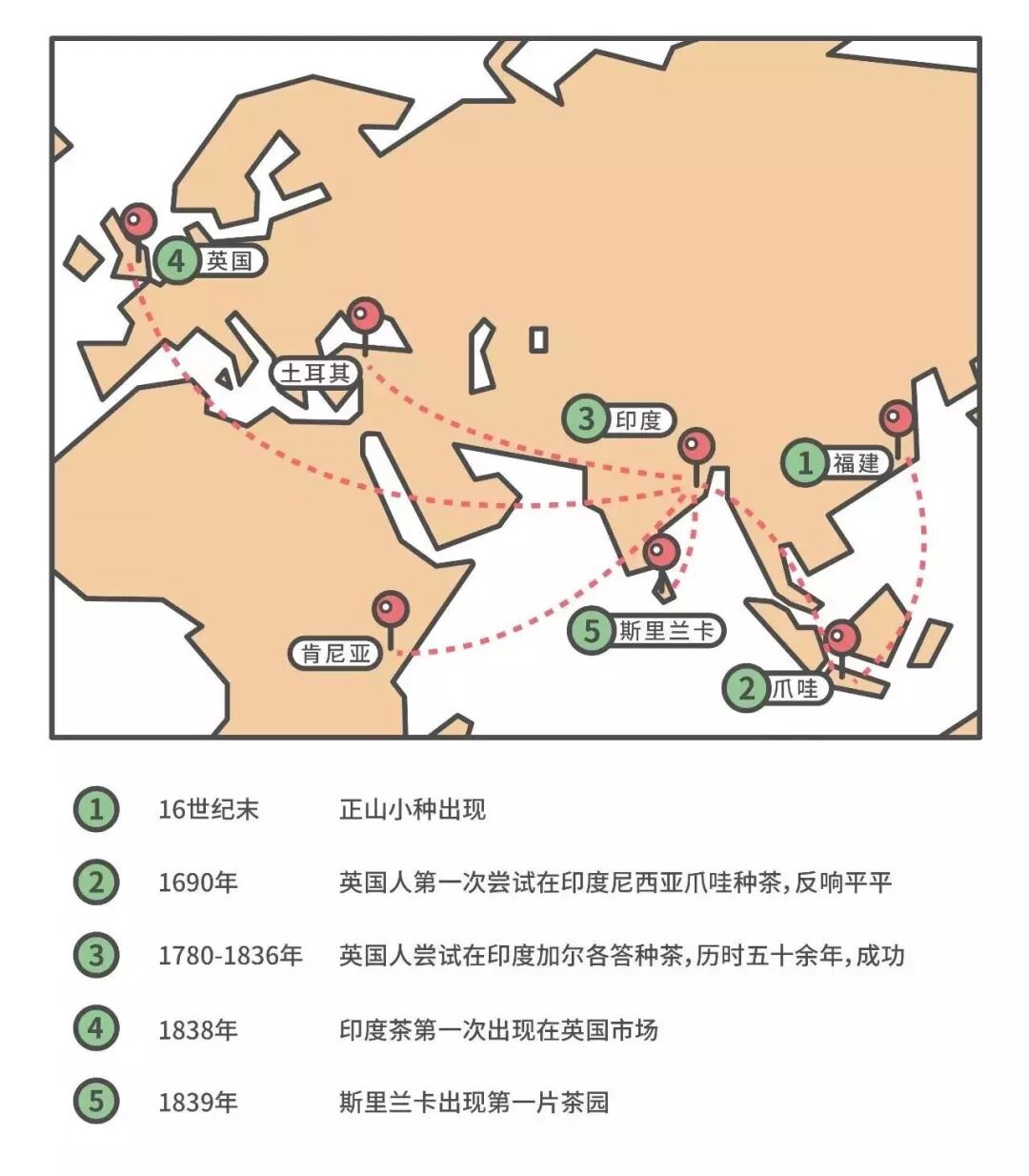 红茶起源于武夷山的氧化茶(正山小种),而之后的遍地开花,基本可以看作一段英国人轰轰烈烈又波澜壮阔的,找备胎史: