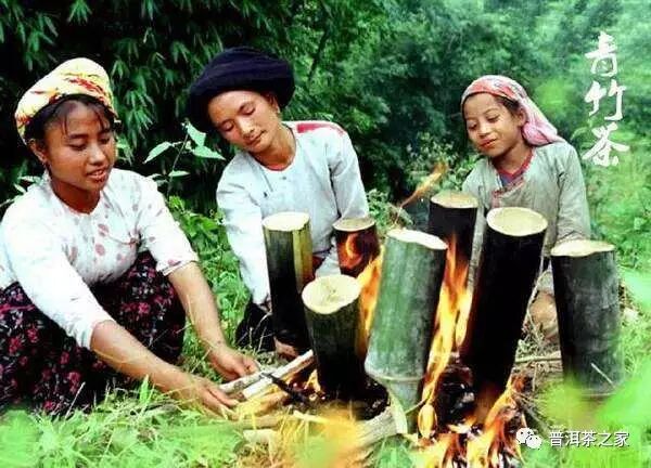 布朗族青竹茶就说这青竹茶吧!布朗族青竹茶是用新鲜香竹作为煮茶和饮茶工具,煮茶的鲜竹简,长约30厘米,口径有的达碗口大小,饮茶的鲜竹筒,一般五六寸长,而底部很细很尖,插在地上,口径有酒盅大小。作法是先将装满山泉水的大竹筒靠在火塘上烘烤至沸腾,投入茶叶(多为毛茶),煮7-8分钟后,将茶水倒入短竹筒内送客人饮用。这种茶多在打猎或远离寨子劳动时使用。这种青竹茶、山泉水、鲜竹青香与茶香味融为一体,滋味十分浓烈。