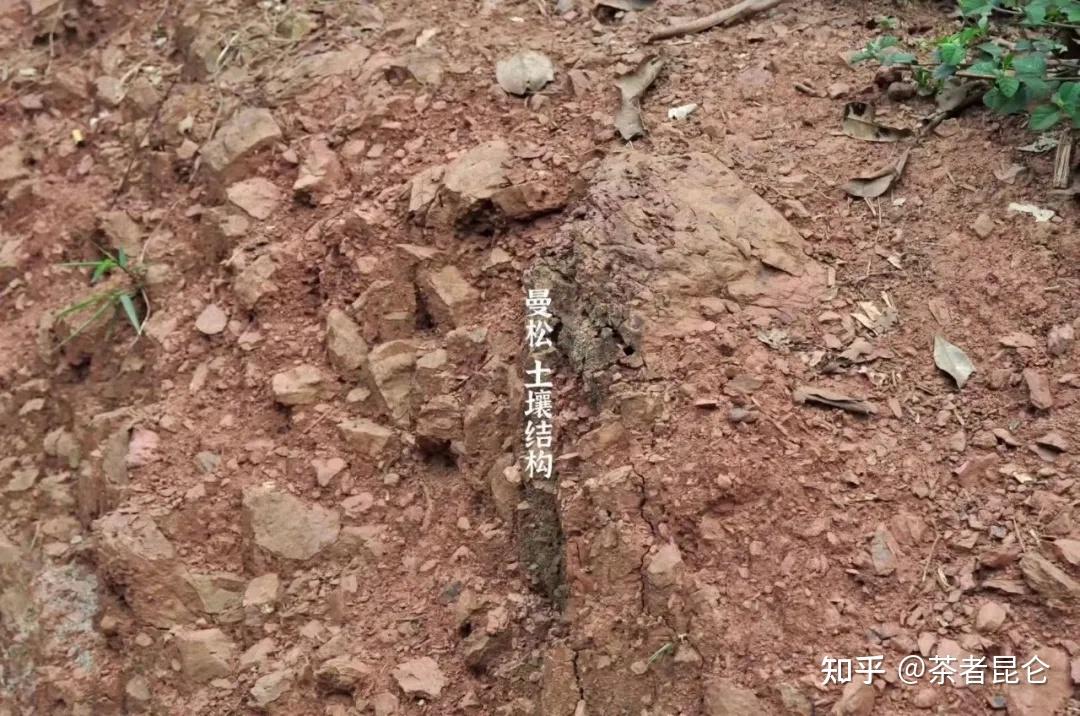 曼松贡茶山里的杂石经过长年累月风化后,形成了特有的红色“烂石土”:遇水成泥,遇风成石,不仅透气和透水性好,还蕴含了丰富的矿物质和微量元素,为曼松茶树生长提供了充足的营养和内含物质,因而能成就贡茶独步天下的口感滋味。