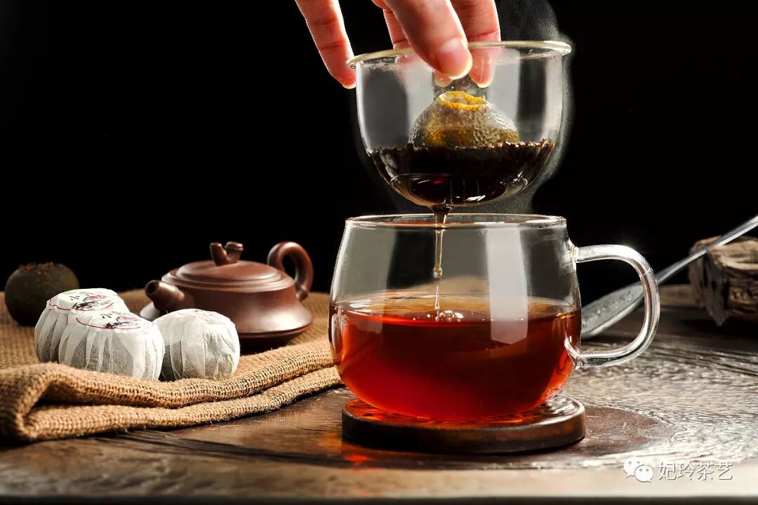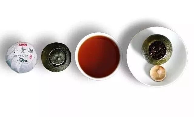小青柑茶融合了清醇芬芳的果香与醇厚甘润的茶香,浓郁的花果香与醇和的陈香相互吸收,糅合交融,显得清新可人而韵味无穷,口感清爽甘醇,香气高润,汤色红浓透亮,汤感细腻柔滑,回味中有清新的甜感,饮用后咽喉部位能明显地感觉到舒适与清凉。