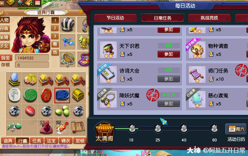 加上中间答题,6个号的师门做完后,时间刚好3点。开始刷铃铛。