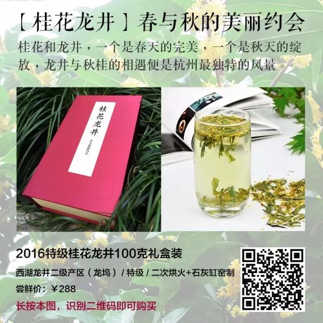 桂花和龙井,一个是春天的完美,一个是秋天的绽放,龙井与秋桂的相遇便是杭州最独特的风景。桂花龙井茶正在制作,十月初即可上市。快来体验一下杭州味道吧……