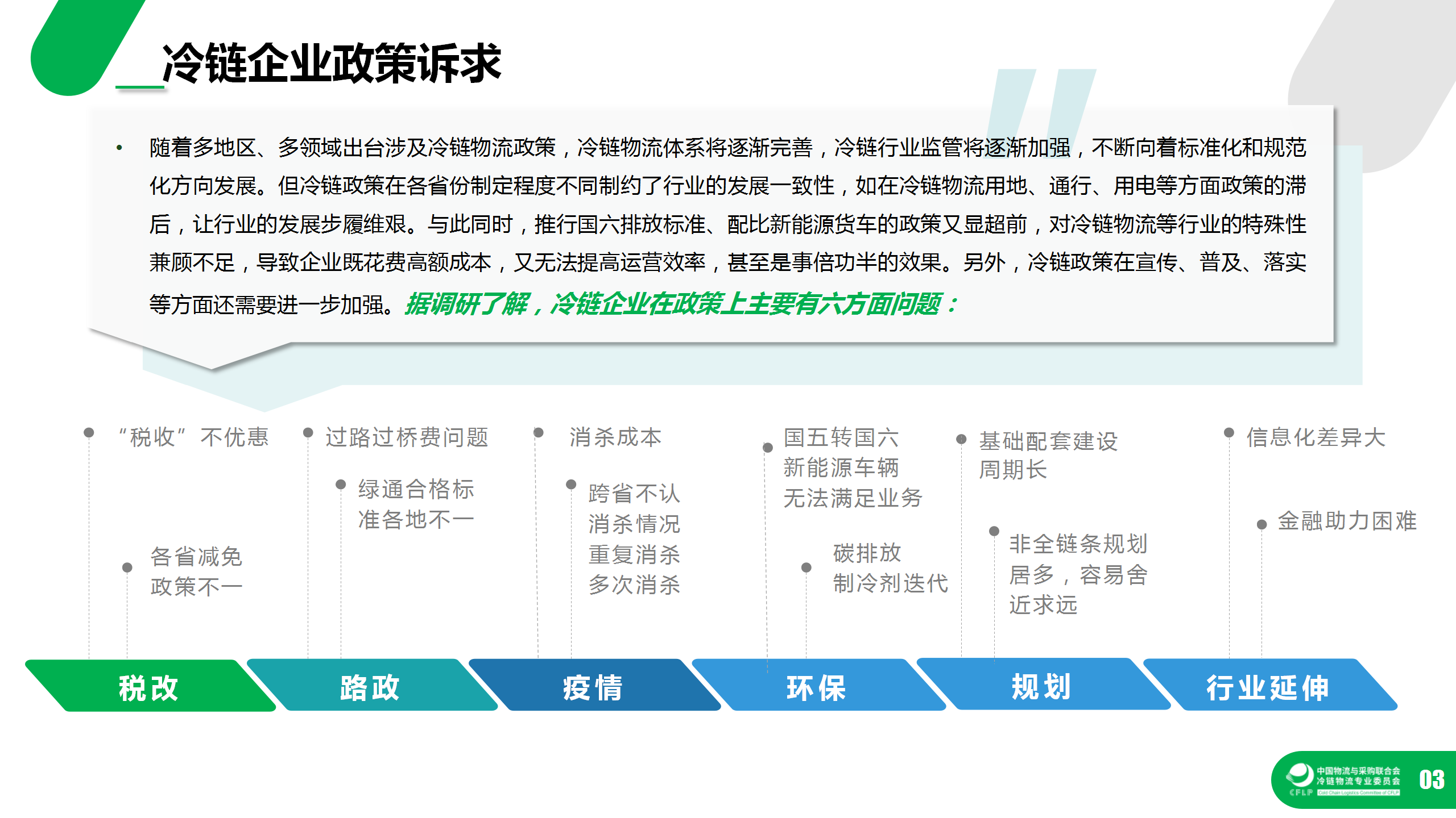三、冷链企业政策诉求分析。
