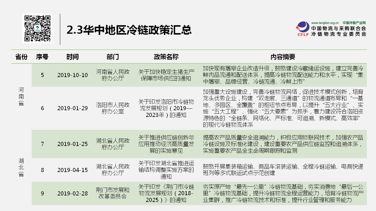 此外,2019年部分省市高度重视冷链物流发展,立足现有基础,依托政策扶持,全方位统筹分析作长远发展规划,如江西省、河南省洛阳市、湖北省荆门市等。