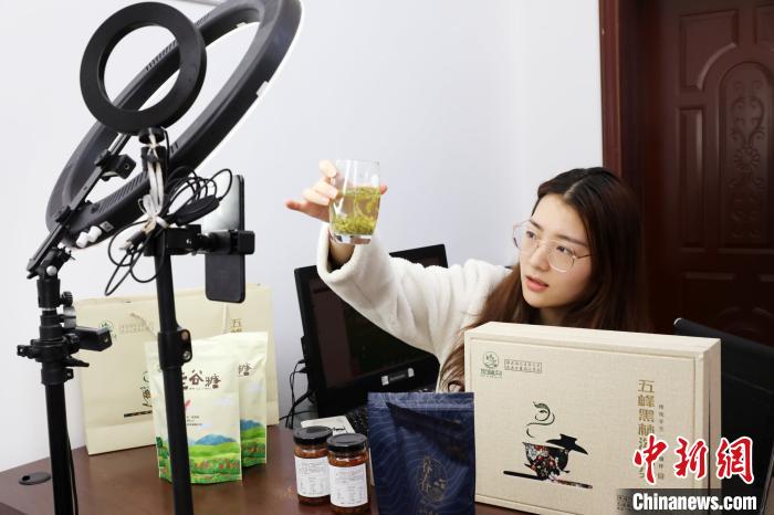 当地主播通过直播推介五峰生态茶 田耀平 摄当天,五峰线上春茶开园节暨销售活动在湖北茶博馆启动,通过“线上推广、线上促销、线上交易”,引导各茶企建立在线消费渠道,破解当前销售困局。