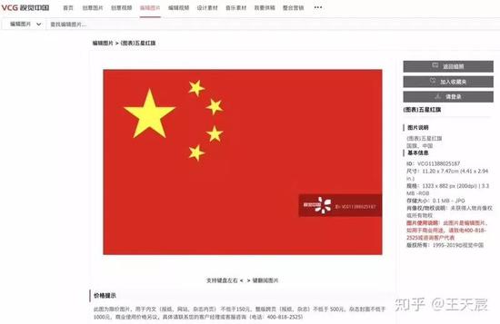有网友挖出了视觉中国的其他奇葩“要求”,比如,国旗和国徽也被标为其版权所有,包括海尔、360、百度等多家公司的LOGO都被视觉中国标记版权。