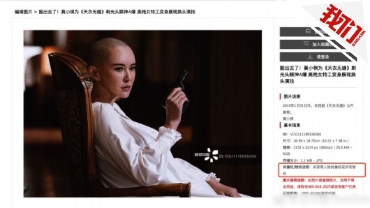 本文:演员用自己照片遭视觉中国收费 回应:她真没版权